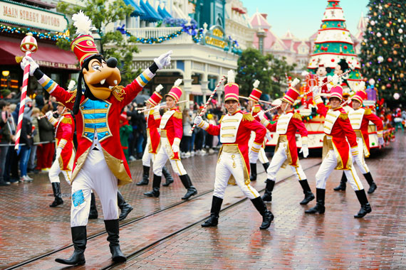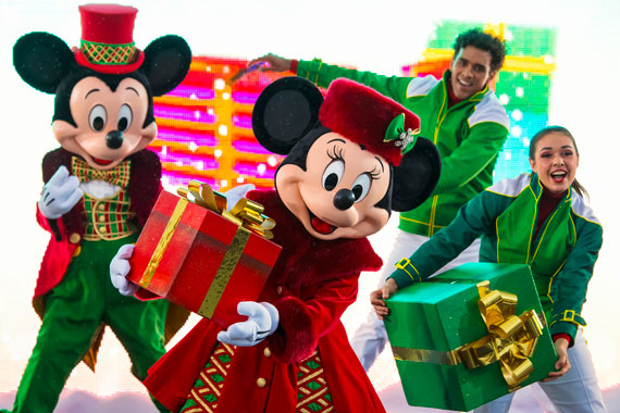 Jump for joy when Mickey, his friends and some seasonal surprises glide past on fabulous floats in the merriest of Christmas parades. Look out for the snow!